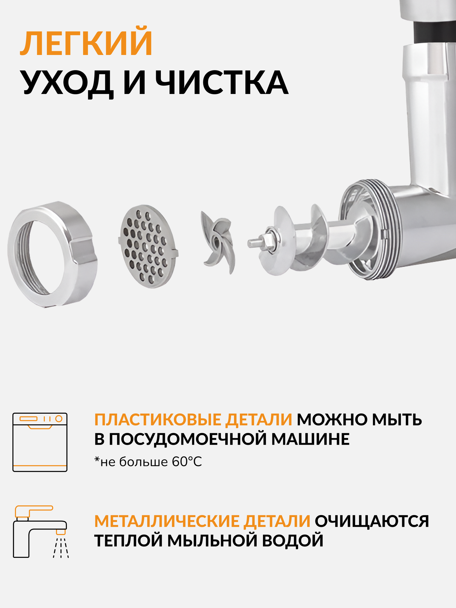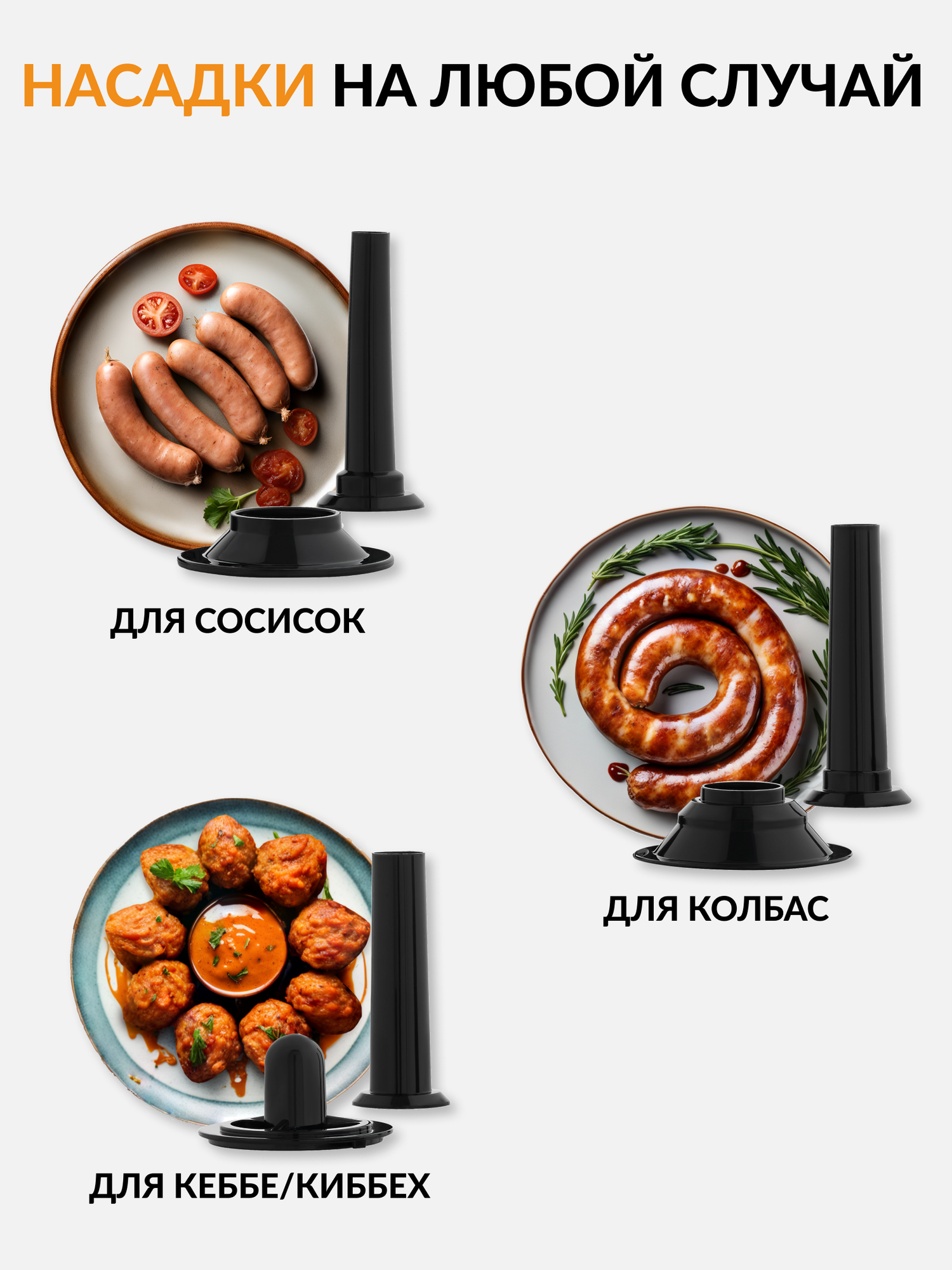 | Насадки | насадка для приготовления колбас / насадка для кеббе / диск для фарша |