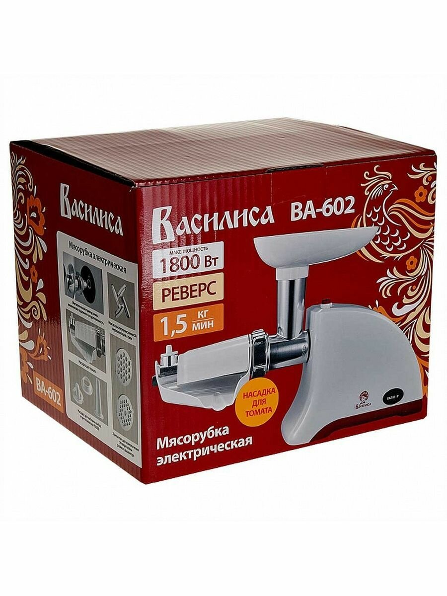 Электромясорубка василиса ВА-602 белый с красным:1800 Вт +насадка для томата (4)