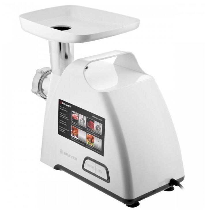 BRAYER Мясорубка BRAYER BR1604, 1800 Вт, 2 кг/мин, реверс, 2 насадки, белая