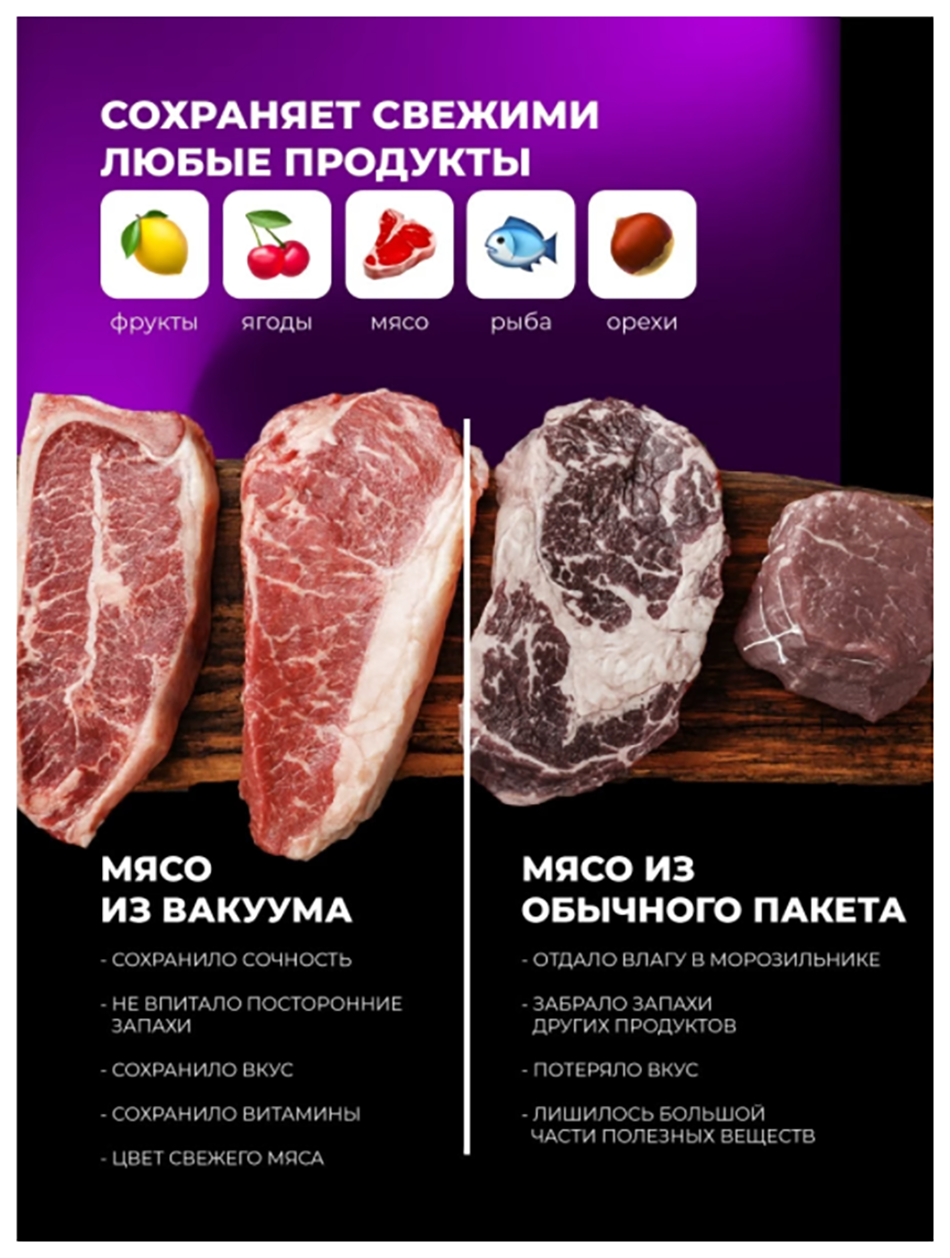 Вакуумный упаковщик / Vacuum Sealer / Упаковщик для продуктов / Герметизация продуктов, 10 пакетов в комплекте интересное: