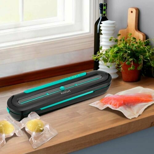 Вакуумный упаковщик KitFort КТ-1522-3, 100Вт, черный/бирюзовый