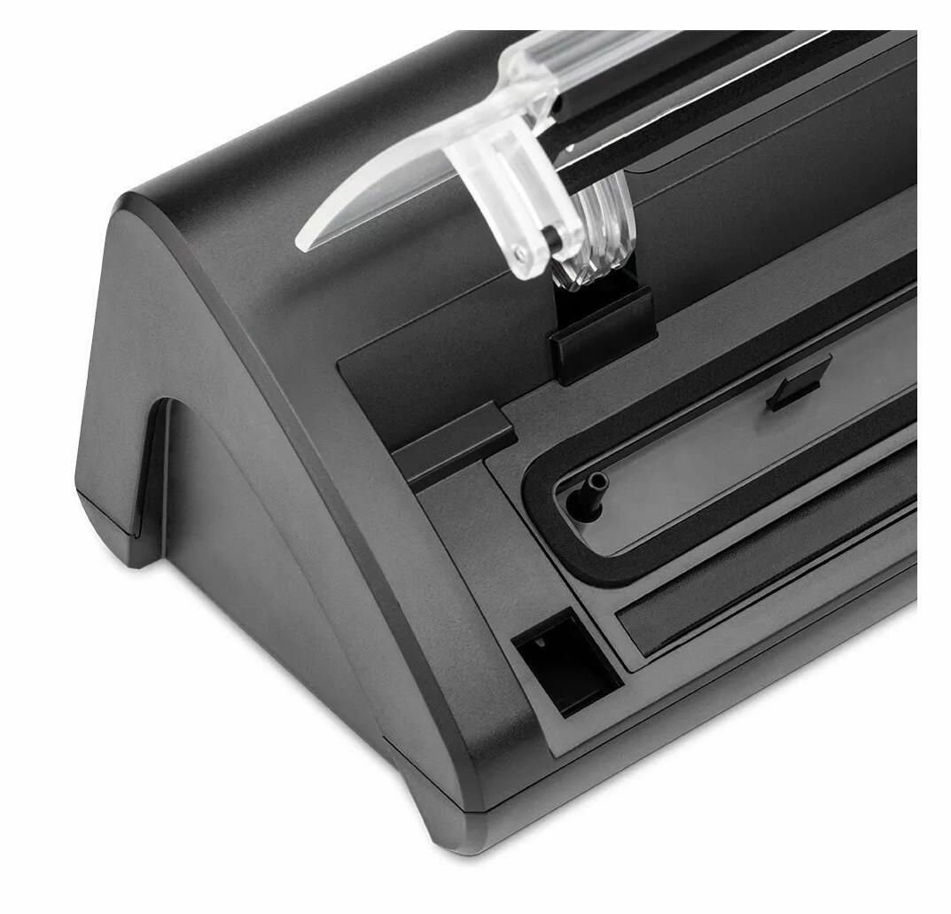 | Минусы: | Желательно приспособление, позволяющее резать рулонные пакеты. Но эта модель без него. |