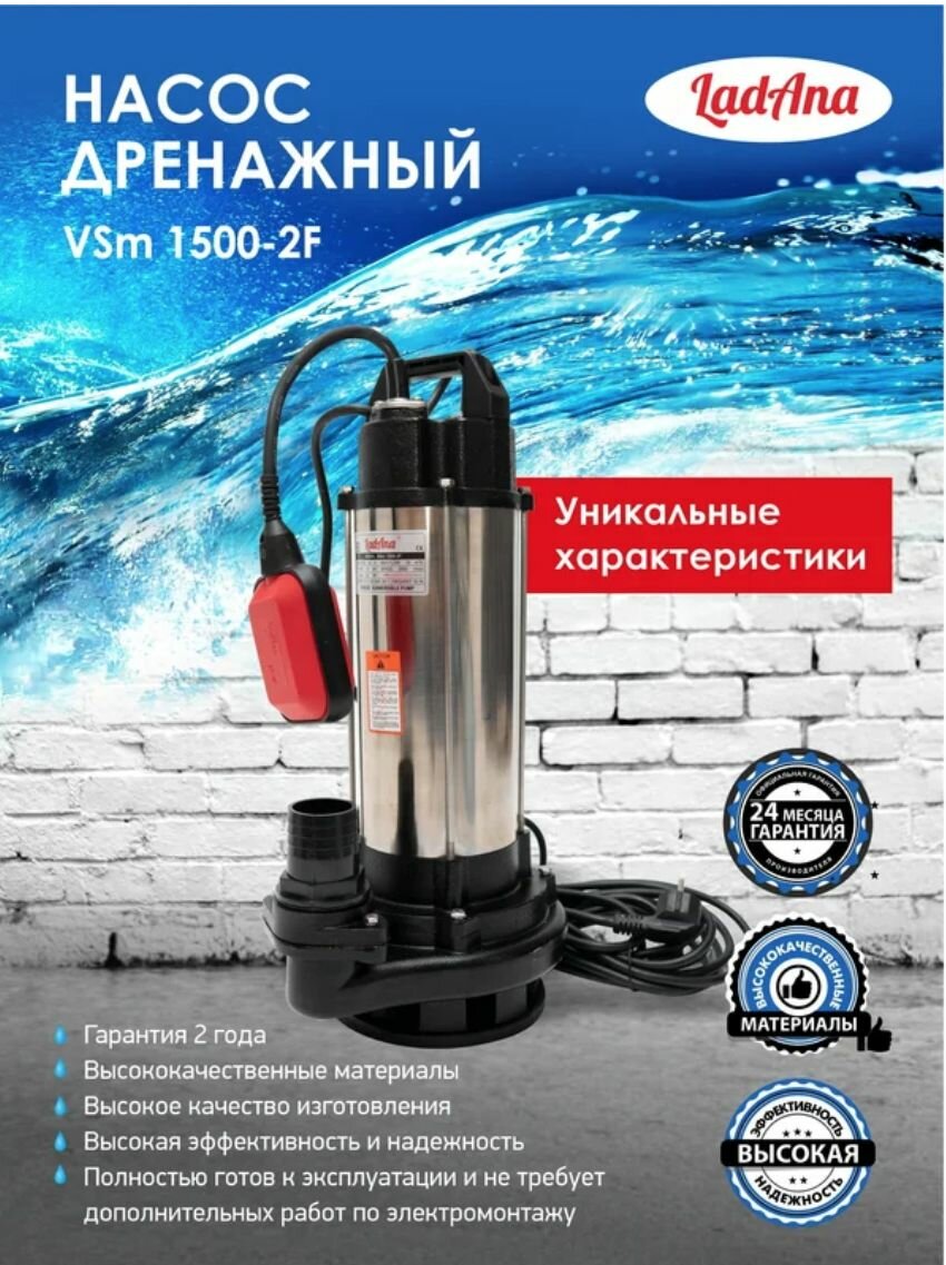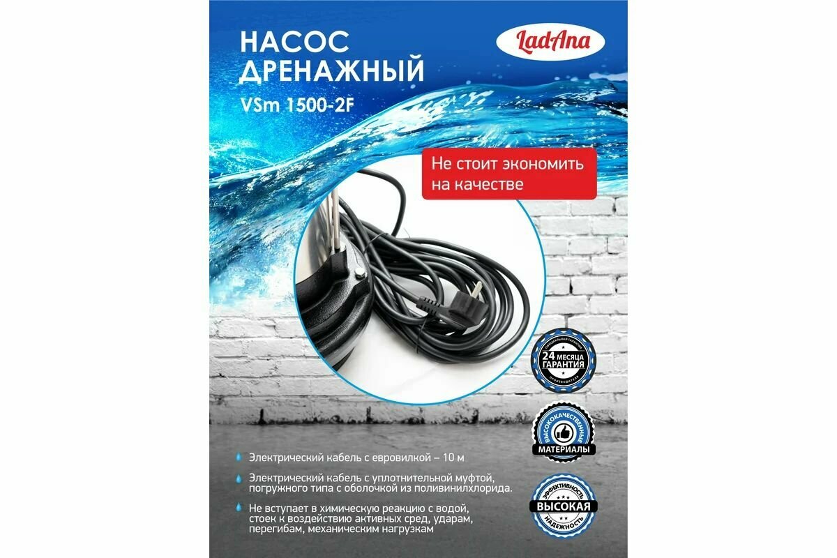 Дренажный насос LadAna VSm1500-2F (чугун) напор 26 метров интересное: