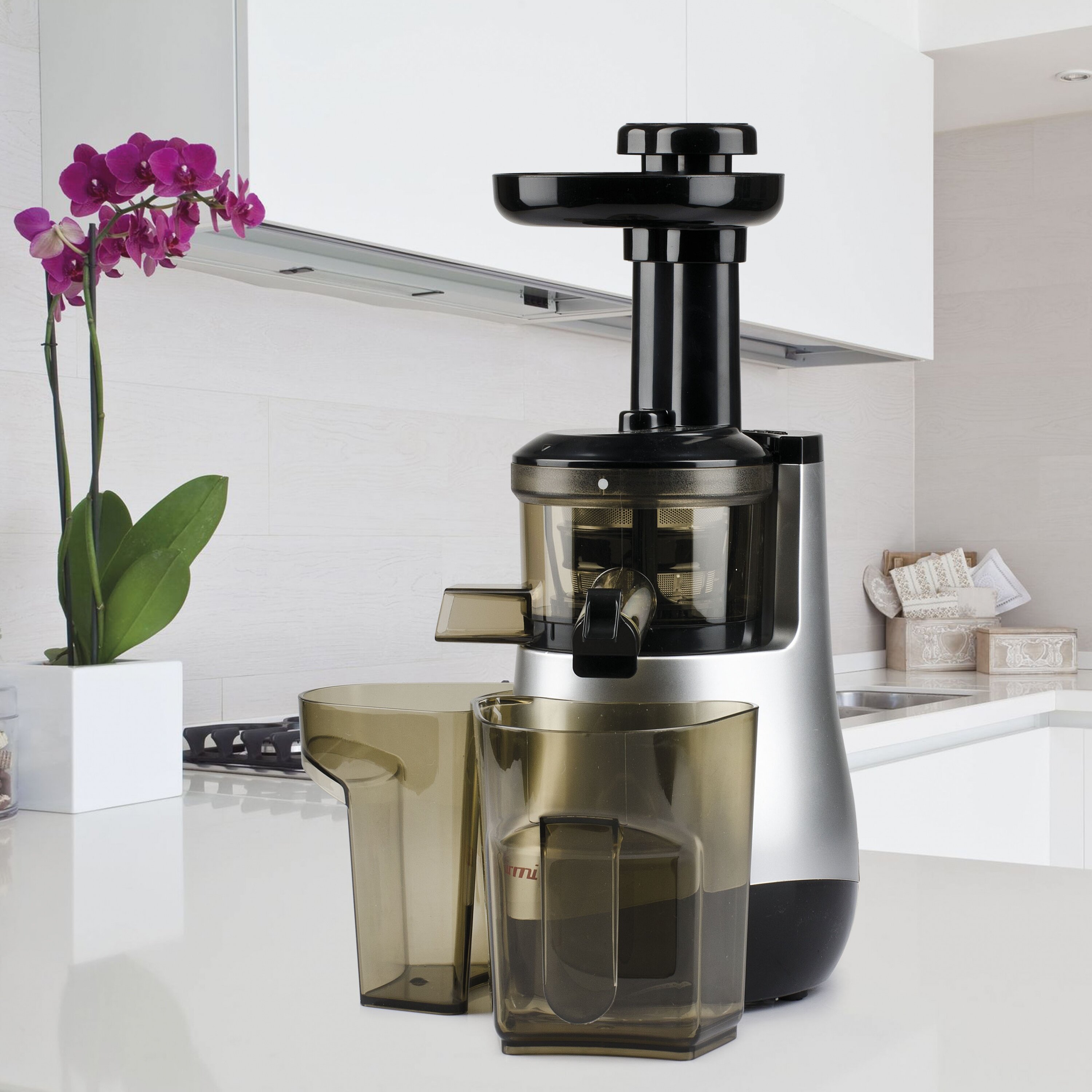| Дополнительная информация | количество шнеков: 1; резервуар для сока: встроенный; материал сетки: нерж. сталь; максимальная скорость вращения: 55 об/мин; загрузочный лоток |