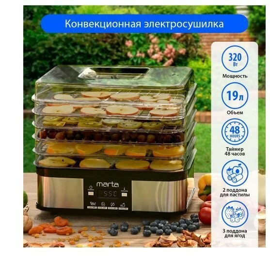MARTA MT-FD1887D 10 поддонов: 5+3 для ягод+2 для пастилы сушилка д/фруктов,овощей интересное: