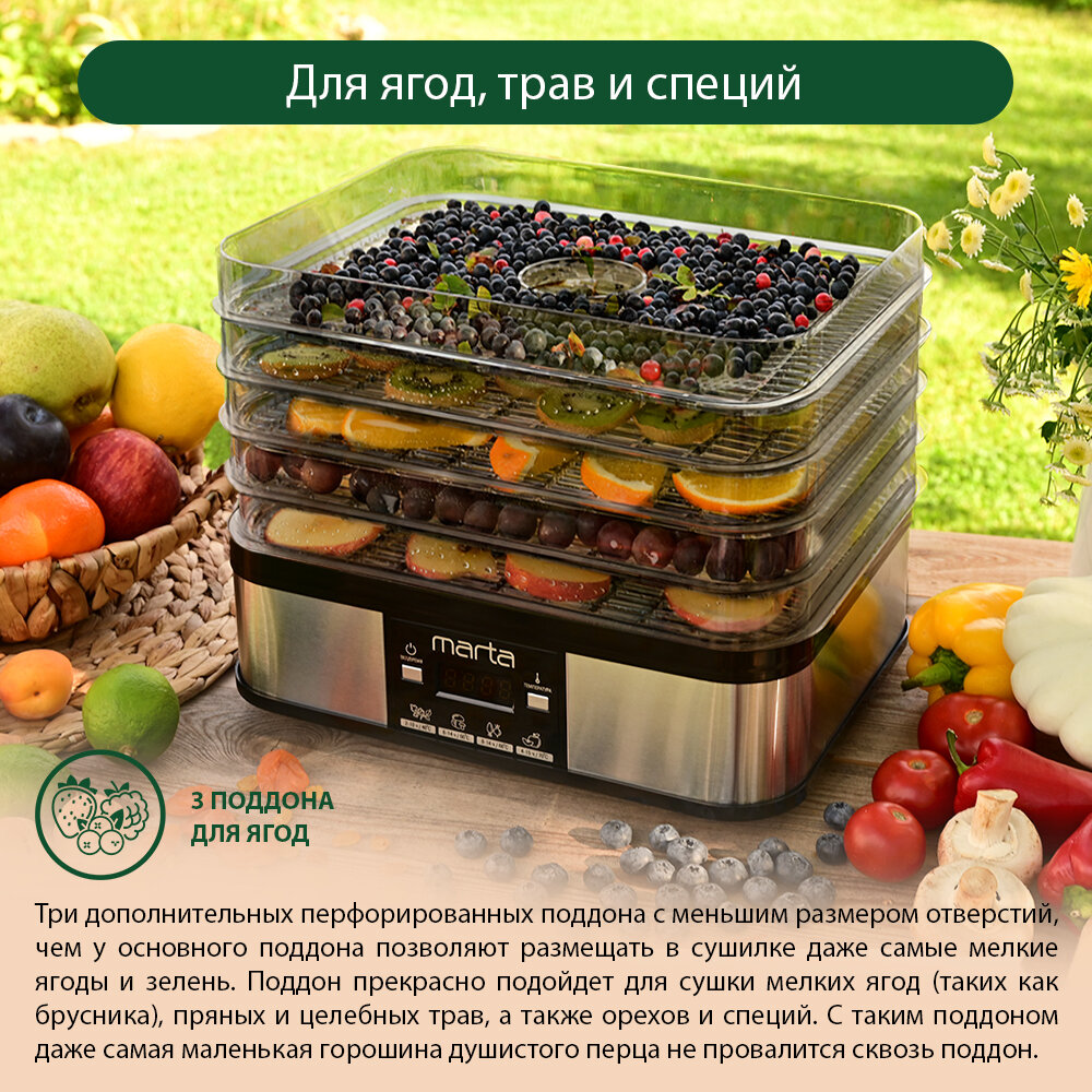Купить MARTA MT-FD1887D 10 поддонов: 5+3 для ягод+2 для пастилы сушилка д/фруктов,овощей