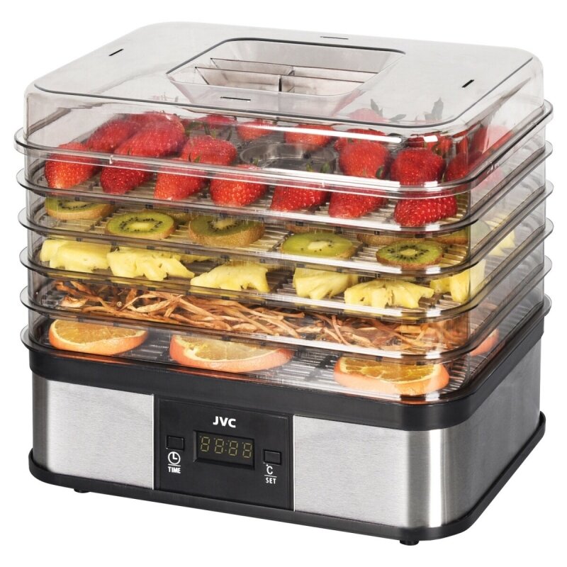 Купить Сушилка для овощей, фруктов и мяса JVC с регулировкой температуры от 40 до 70 градусов и таймером, цифровое управление, 6 поддонов, 245 Вт