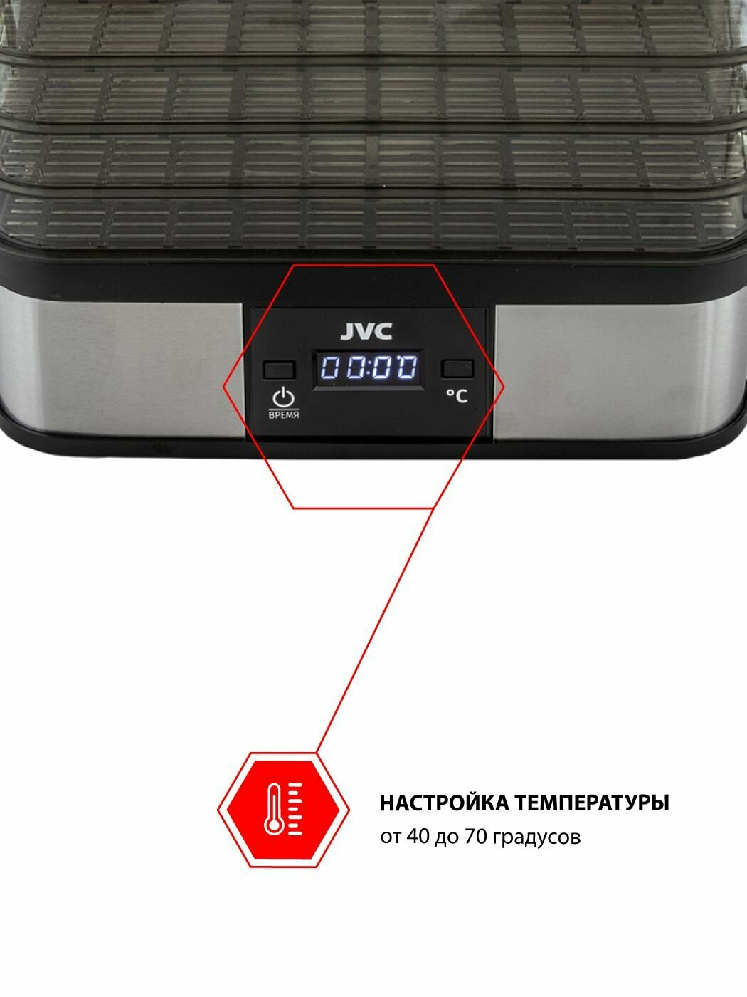 Сушилка для овощей, фруктов и мяса JVC с регулировкой температуры от 40 до 70 градусов и таймером, цифровое управление, 6 поддонов, 245 Вт