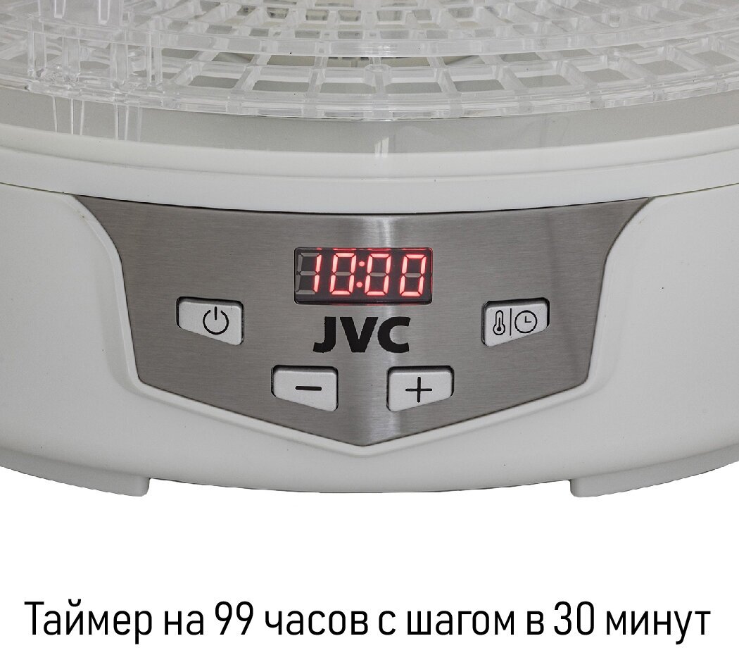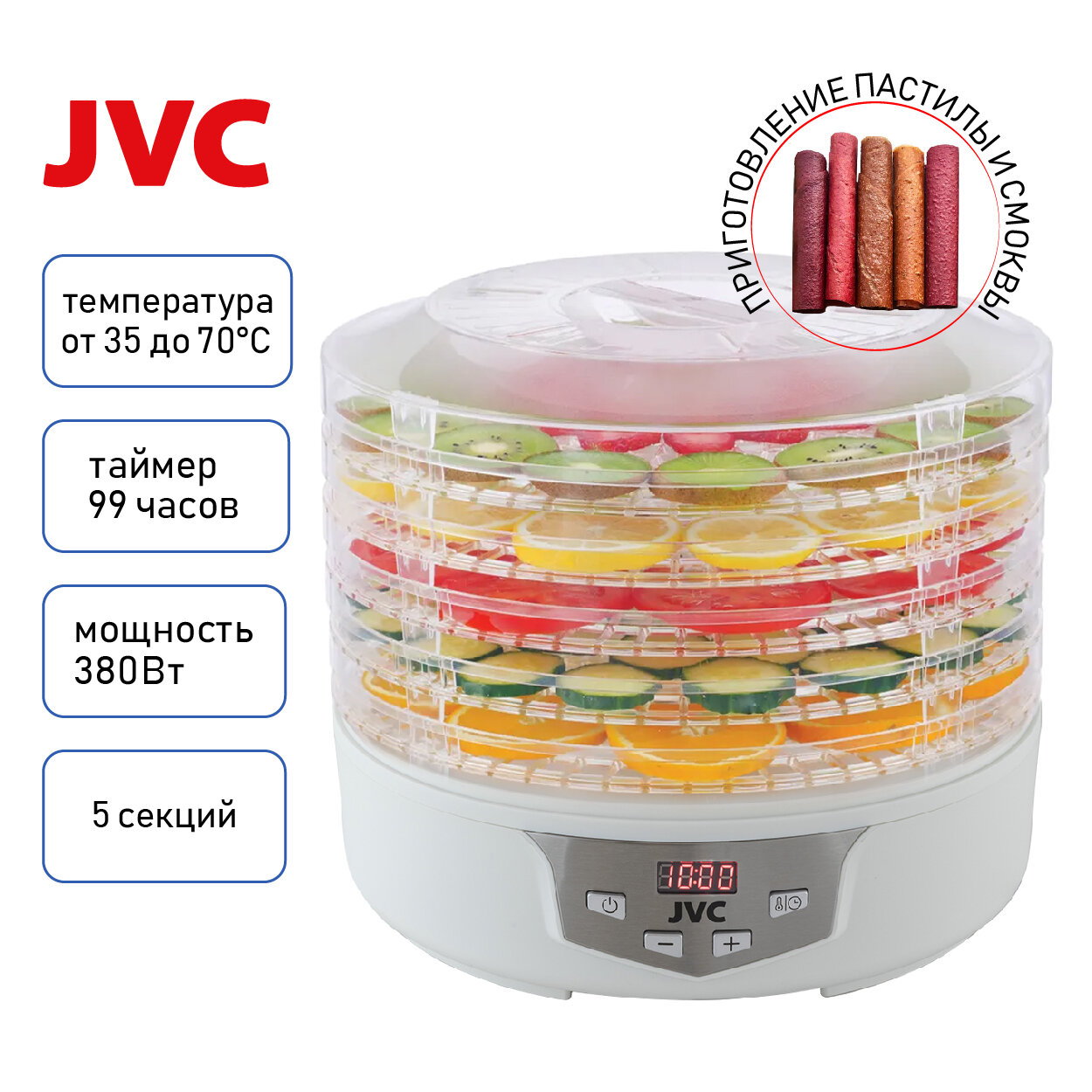 Сушилка для овощей, фруктов и мяса JVC JK-FD752, 5 поддонов, с регулировкой температуры от 35 до 70 градусов и таймером на 99 часов, 380 Вт