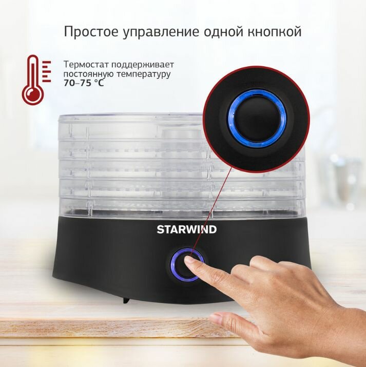 Сушилка для овощей и фруктов StarWind SFD5031, черный, 5 поддонов интересное: