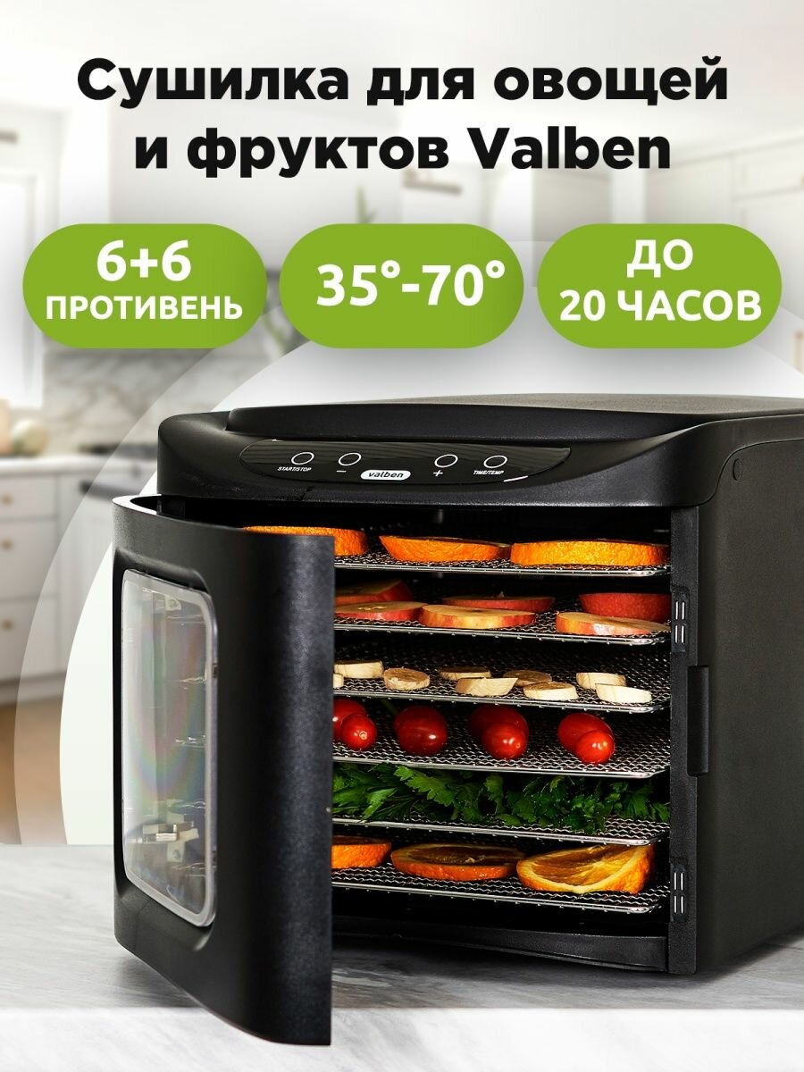 Сушилка электрическая для овощей и фруктов, дегидратор, Valben, 6 поддонов интересное: