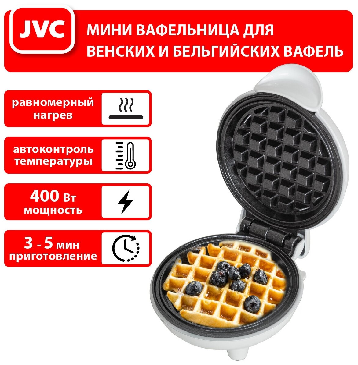Мини-вафельница JVC JK-MB035 12 см для венских и бельгийских вафель, антипригарное покрытие, автоконтроль температуры, 400 Вт