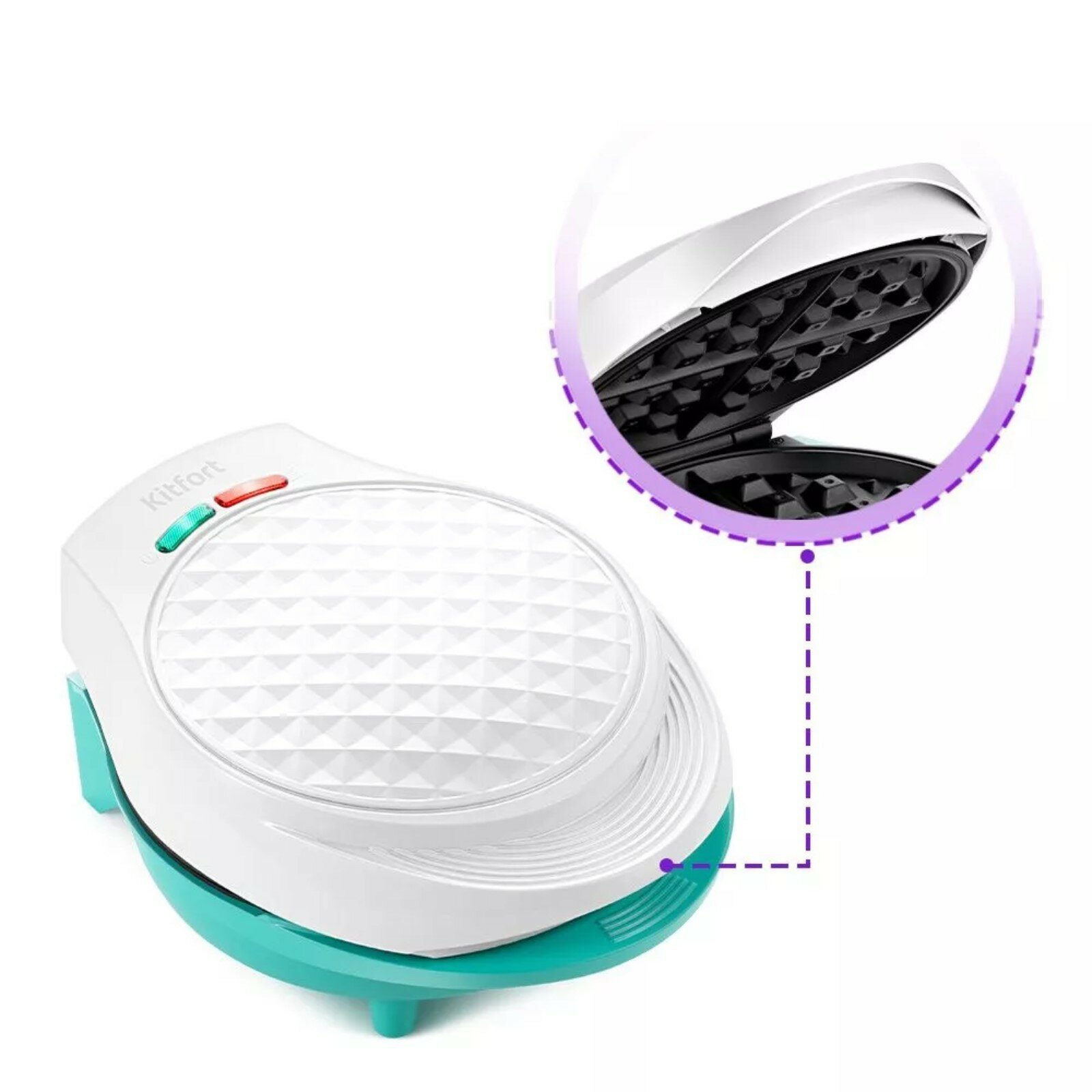 Вафельница Kitfort КТ-1667, 1000 Вт, бельгийские вафли, антипригарное покрытие, бело-зелёная