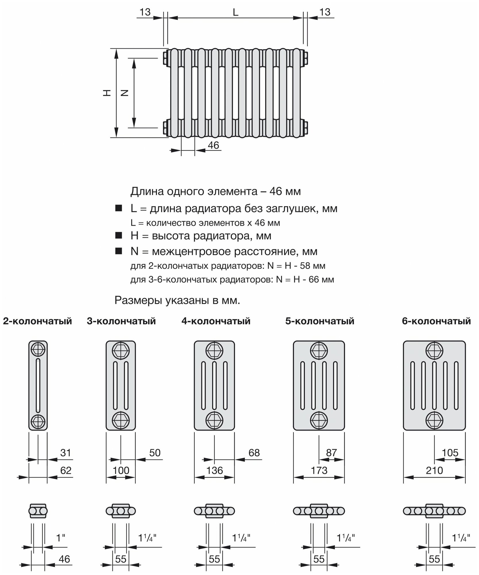 Радиатор трубчатый Zehnder Charleston Retrofit 2056, 10 сек.1/2 бок.подк. RAL9016 (кроншт.в компл)