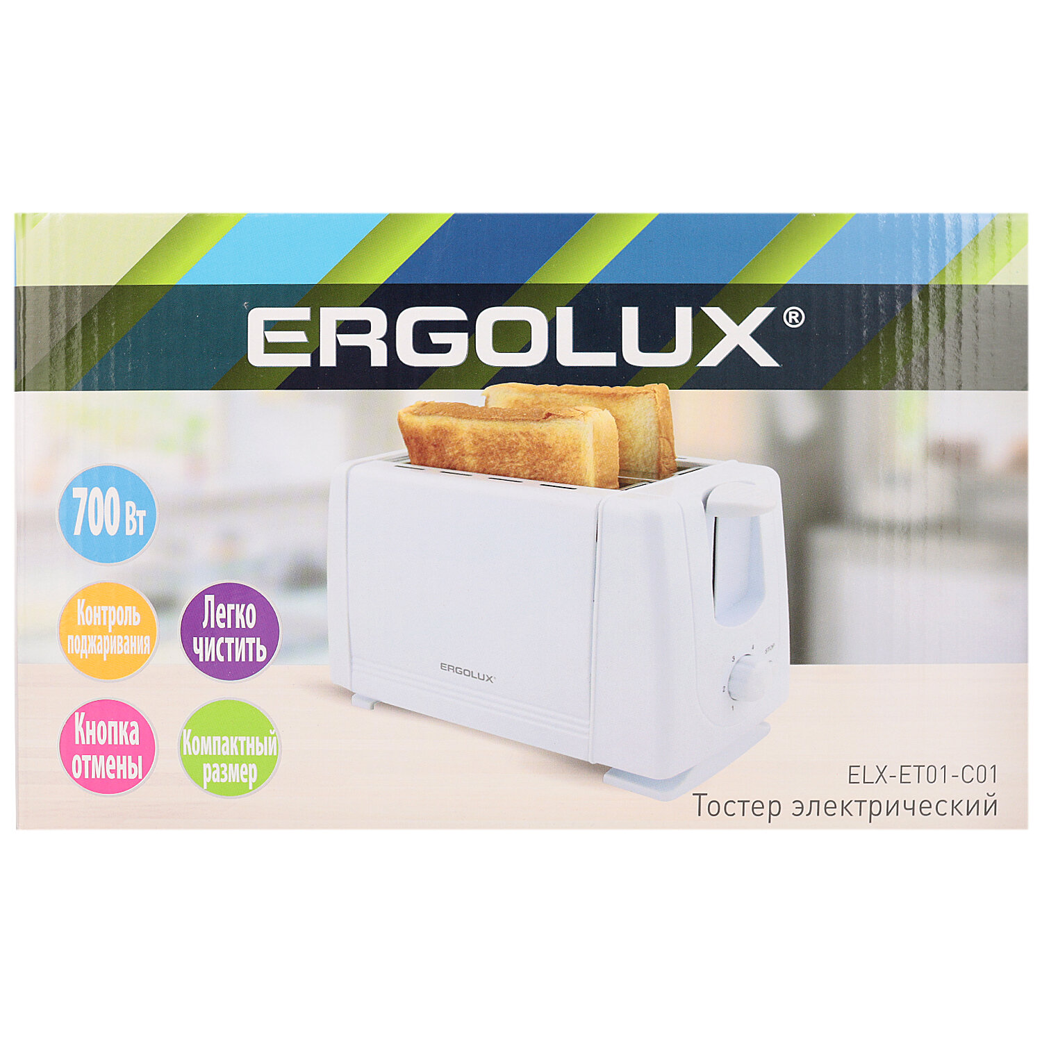 ELX-ET01-C01 NEW белый ( электрический тостер 220-240 В, 700 Вт), ERGOLUX 14721 (1 шт.)