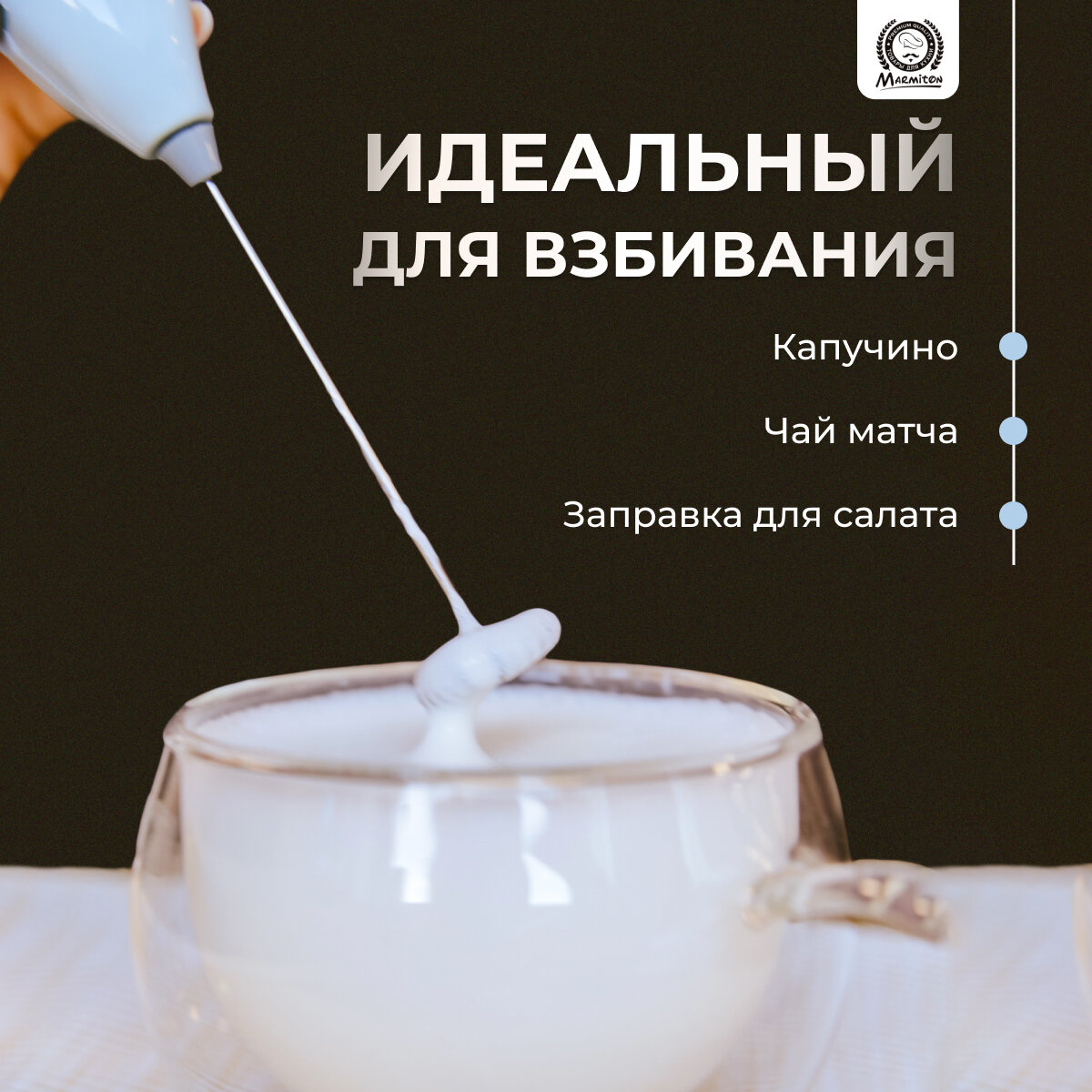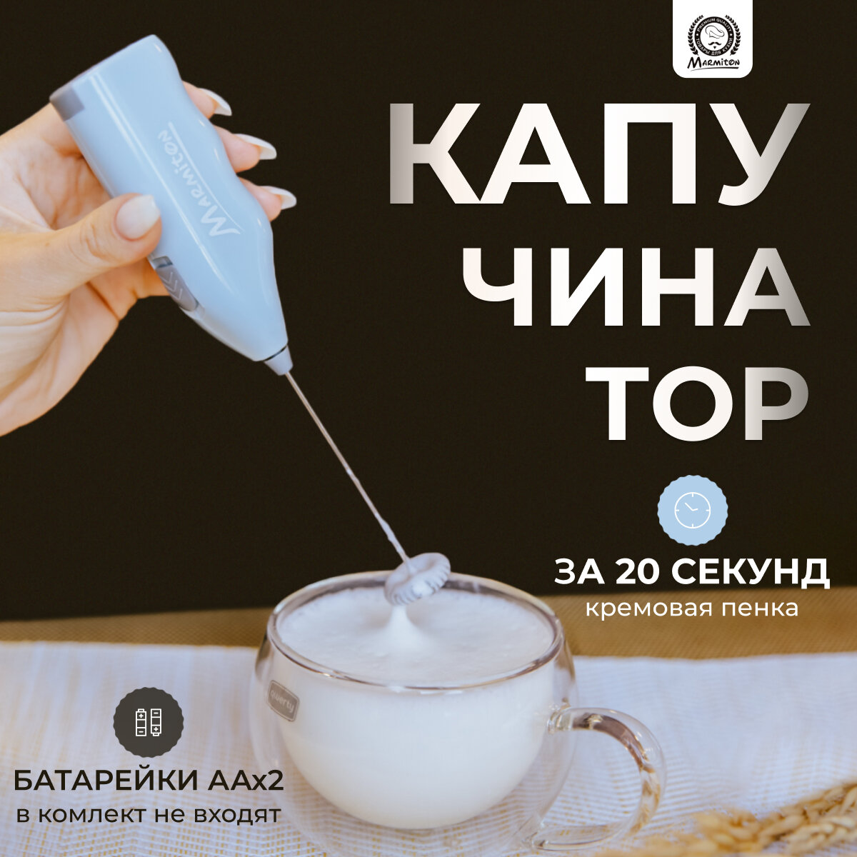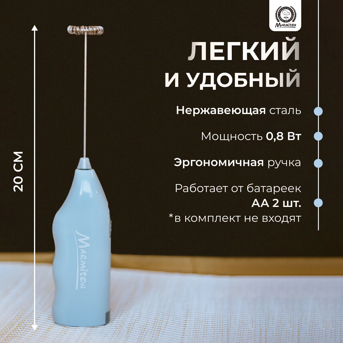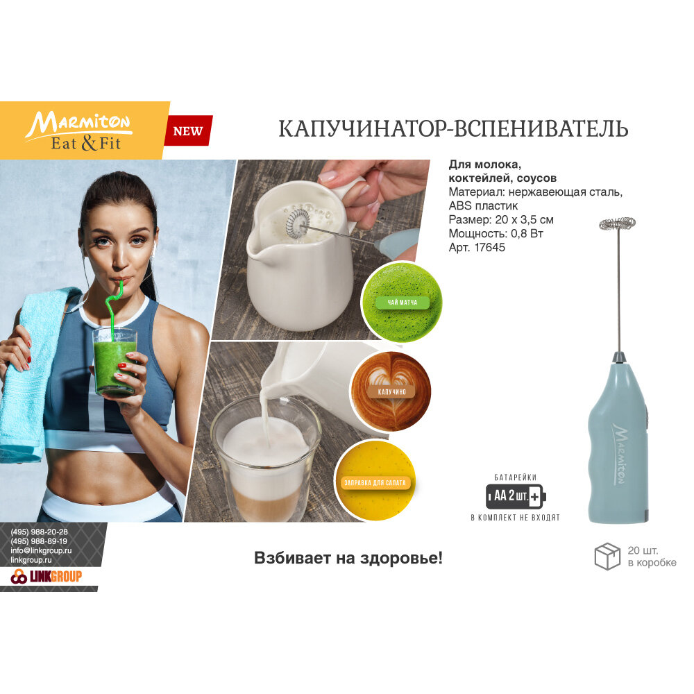 Капучинатор-вспениватель для молока, коктейлей, соусов, работает от батареек 2*АА (в комплект не входят) MARMITON интересное: