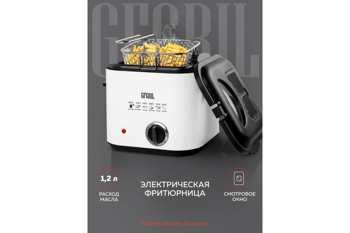 GFGRIL Электрическая фритюрница GFF-012 Easy Cook, объем 1.2 л, высокая мощность, со съемной корзиной и крышкой, со встроенной чашей с антипригарным покрытием