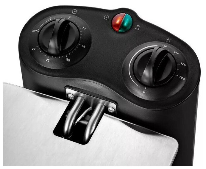 Наличие таймера в разы повышает удобство в использовании. Благодаря разъёмной конструкции, фритюрница быстро разбирается и моется. Компактная и занимает немного места на кухне. Относительно экономичный расход масла (минимально допустимый уровень для приготовления 2,5 л). Приготовили картофель фри и куриные крылья-получились великолепно. В инструкции имеются рецепты приготовления.