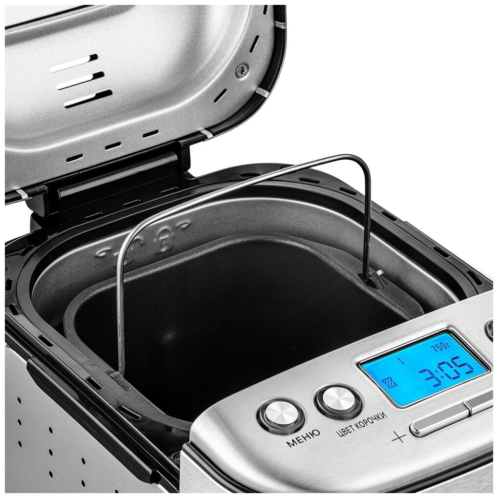 | Дополнительная информация | Комплектация 1. Хлебопечь с формой для выпечки — 1 шт. 2. Перемешивающая лопатка — 1 шт. 3. Мерная ложка — 1 шт. 4. Мерный стакан — 1 шт. 5. Крюк для извлечения лопатки — 1 шт. 6. Руководство по эксплуатации — 1 шт. 7. Коллекционный магнит — 1 шт.* *опционально |