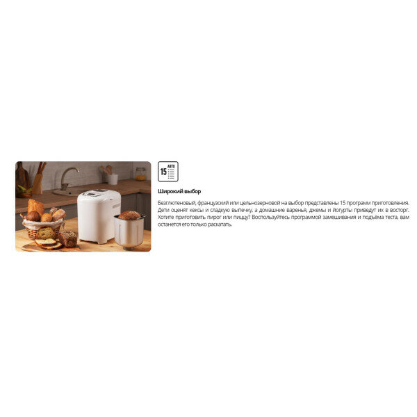 | Программы | варенье / безглютеновая выпечка / французский багет / замес теста / сладкая выпечка |