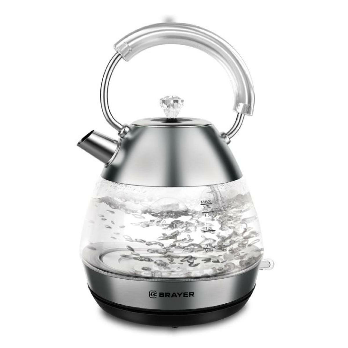 Чайник BRAYER BR1027, 1,7 л, 2200 Вт, закрытый нагревательный элемент, стекло, серебро