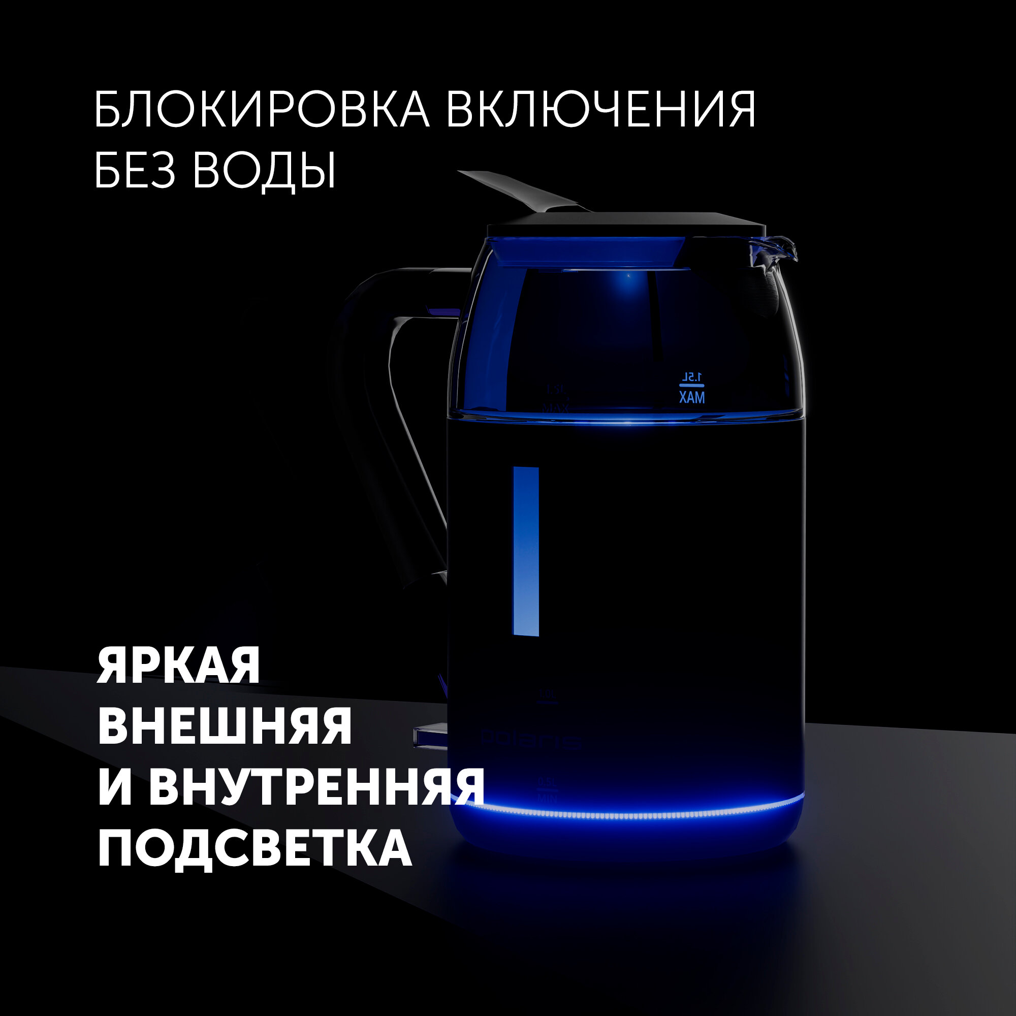 Чайник Polaris PWK 1527CGL, 2150 Вт блокировка включения без воды, стекло, подсветка