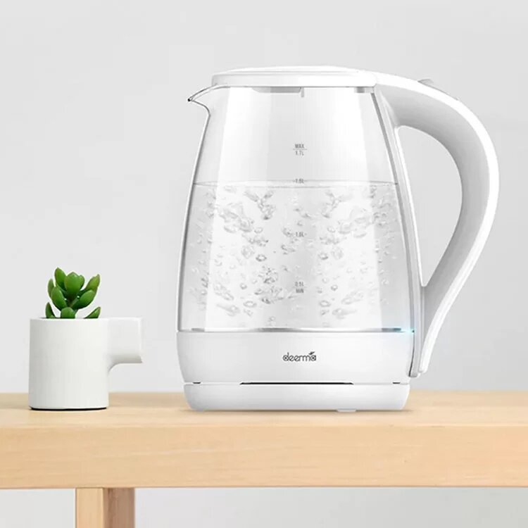 Чайник электрический DEERMA DEM-SH30W, стекло, 1.7 л, 2200 Вт, белый
