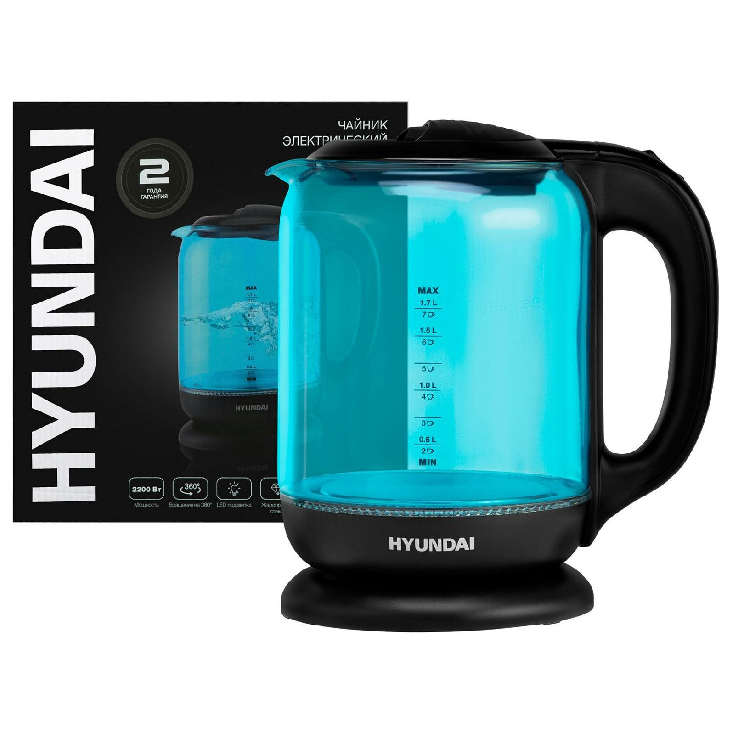 Купить Чайник электрический Hyundai HYK-G2806, 1,8 л, стекло голубое, пластик черный