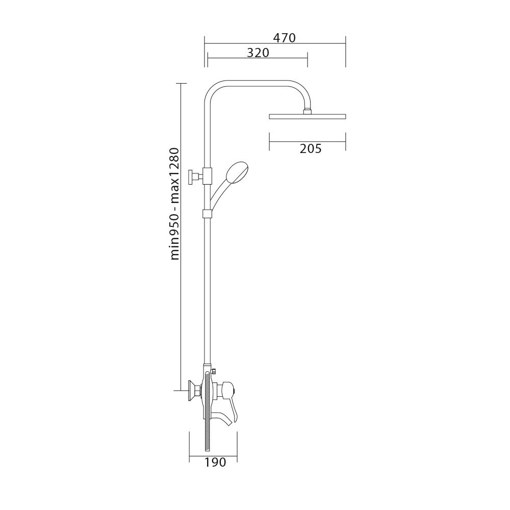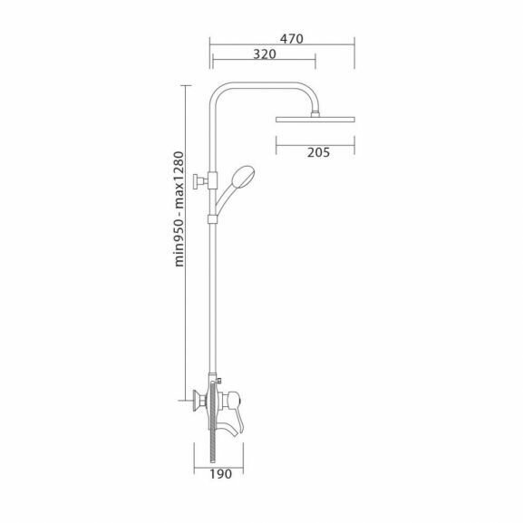 | Дополнительная информация | высота стойки для душа: 1280 мм; диаметр верхнего душа: 200 мм |