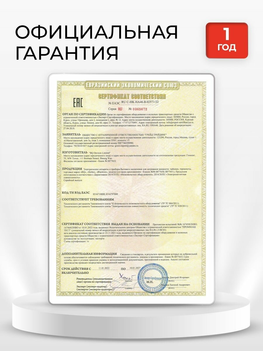 | Безопасность | блокировка включения без воды / отключение при снятии с подставки |