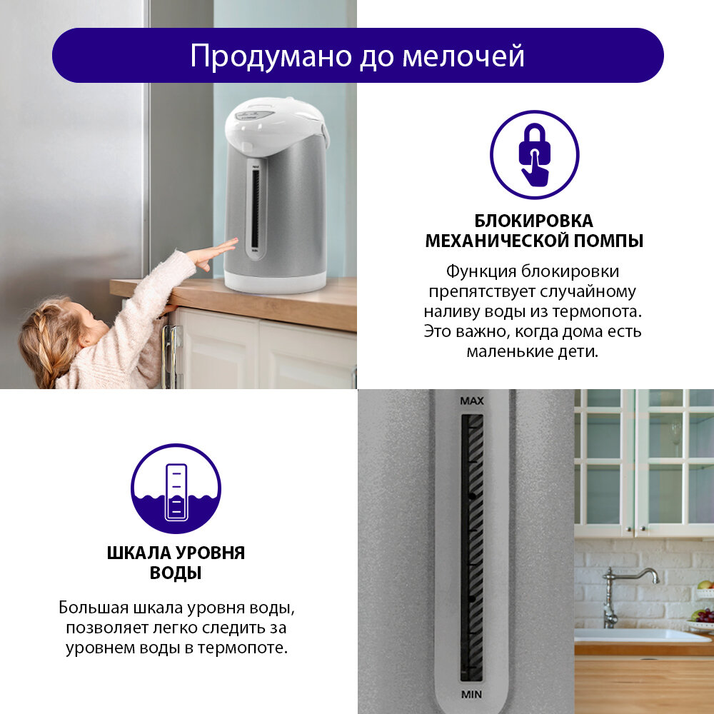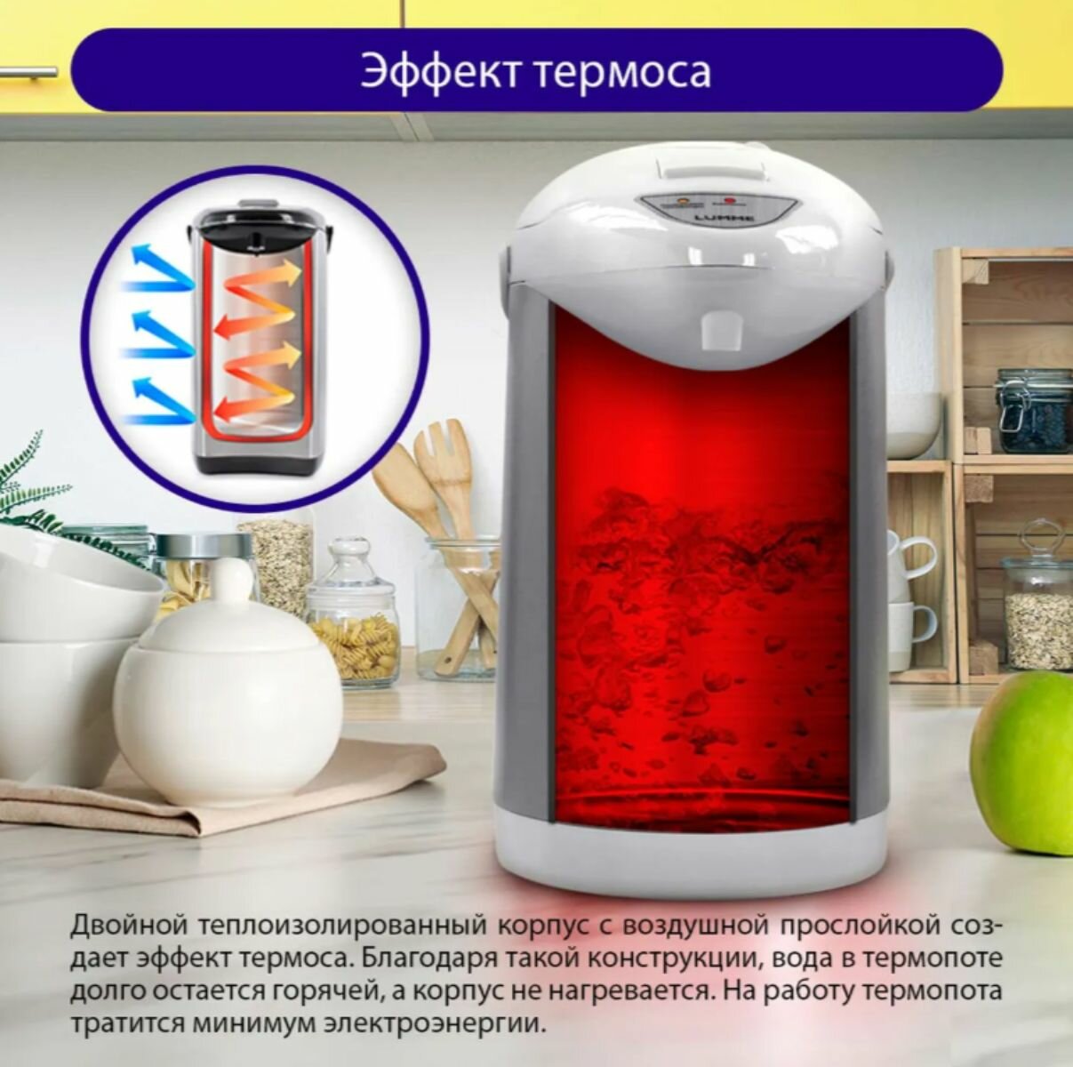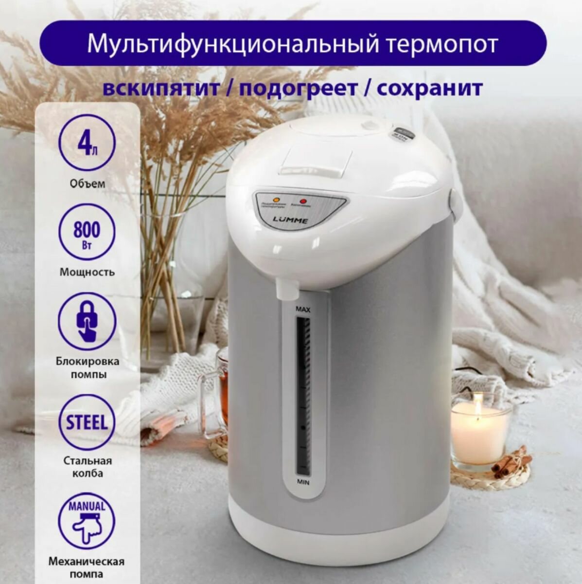 Термопот LUMME LU-3835 белый жемчуг электрический, ручная помпа 4 л