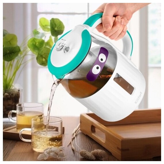 Чайник электрический Kitfort КТ-6129-3 1.5л. 2200Вт бирюзовый КТ-6129-3 интересное: