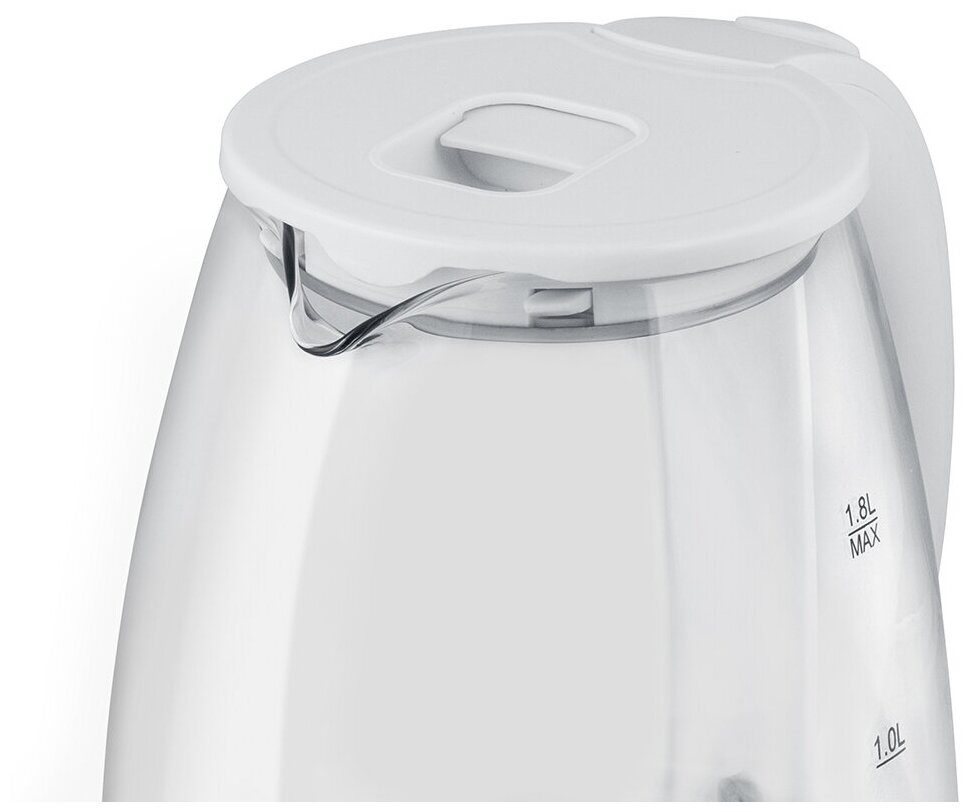 Чайник электрический Блэктон КТ1800G с дисковым нагревательным элементом жаропрочное стекло / пластик фильтр механическая крышка белый 1500Вт 1.8л /