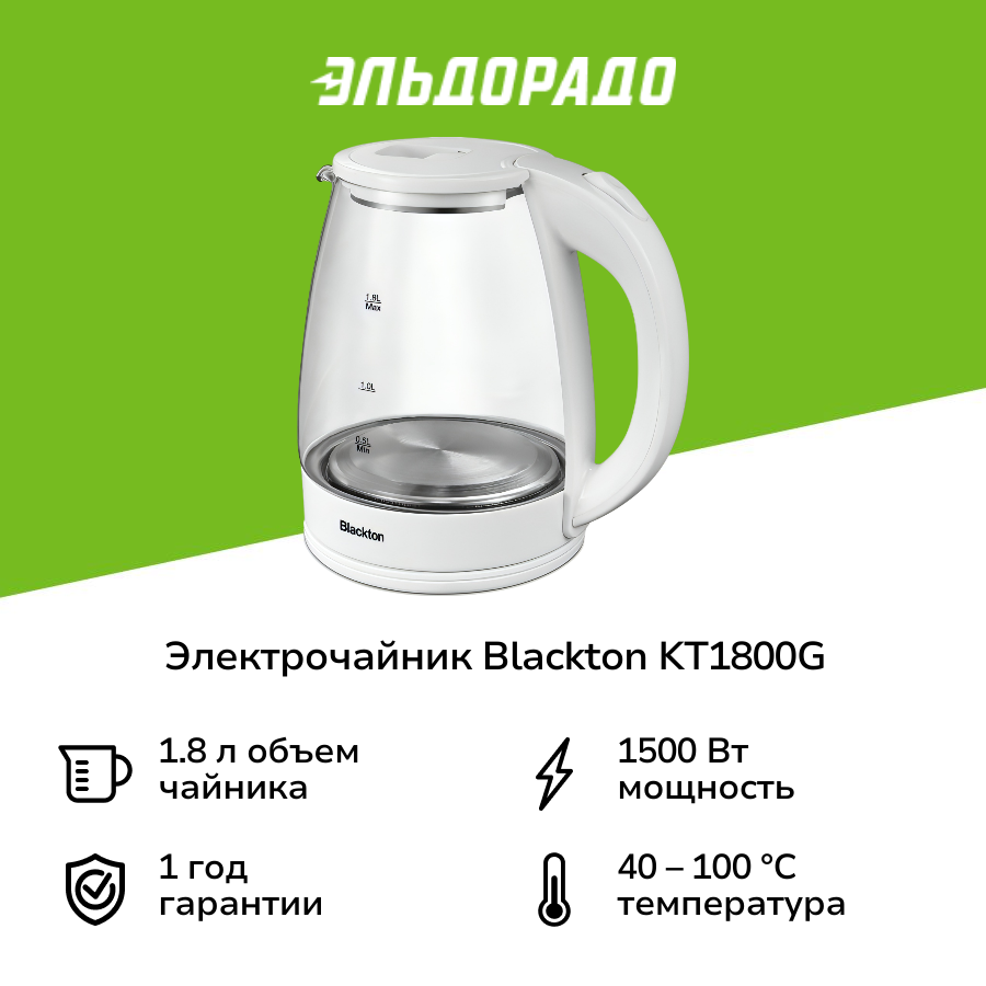 Чайник электрический Blackton Bt KT1800G Белый / Стеклянный / 1.8 л 1500 Вт