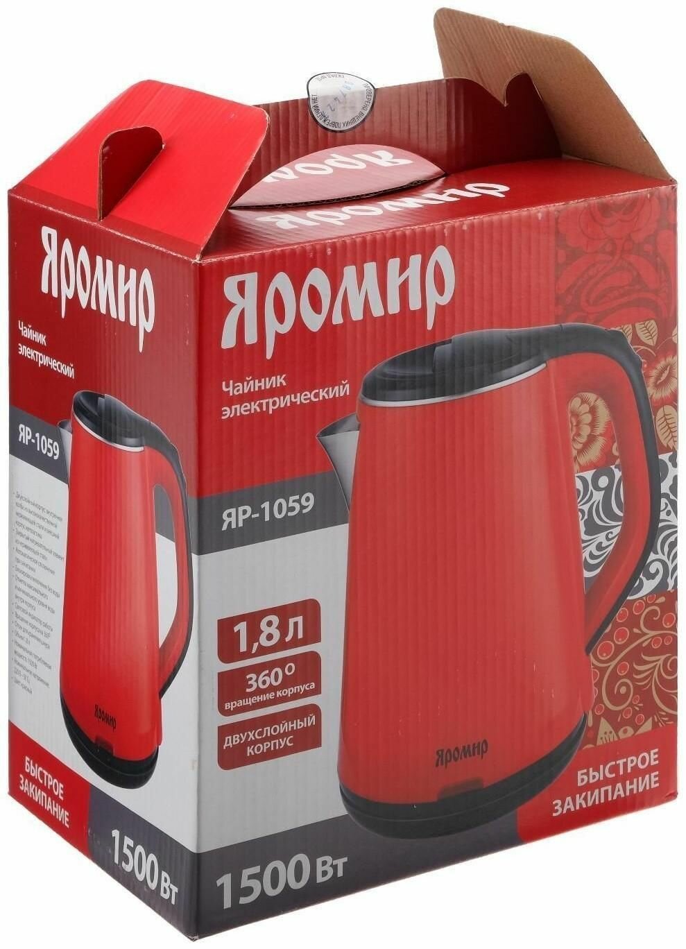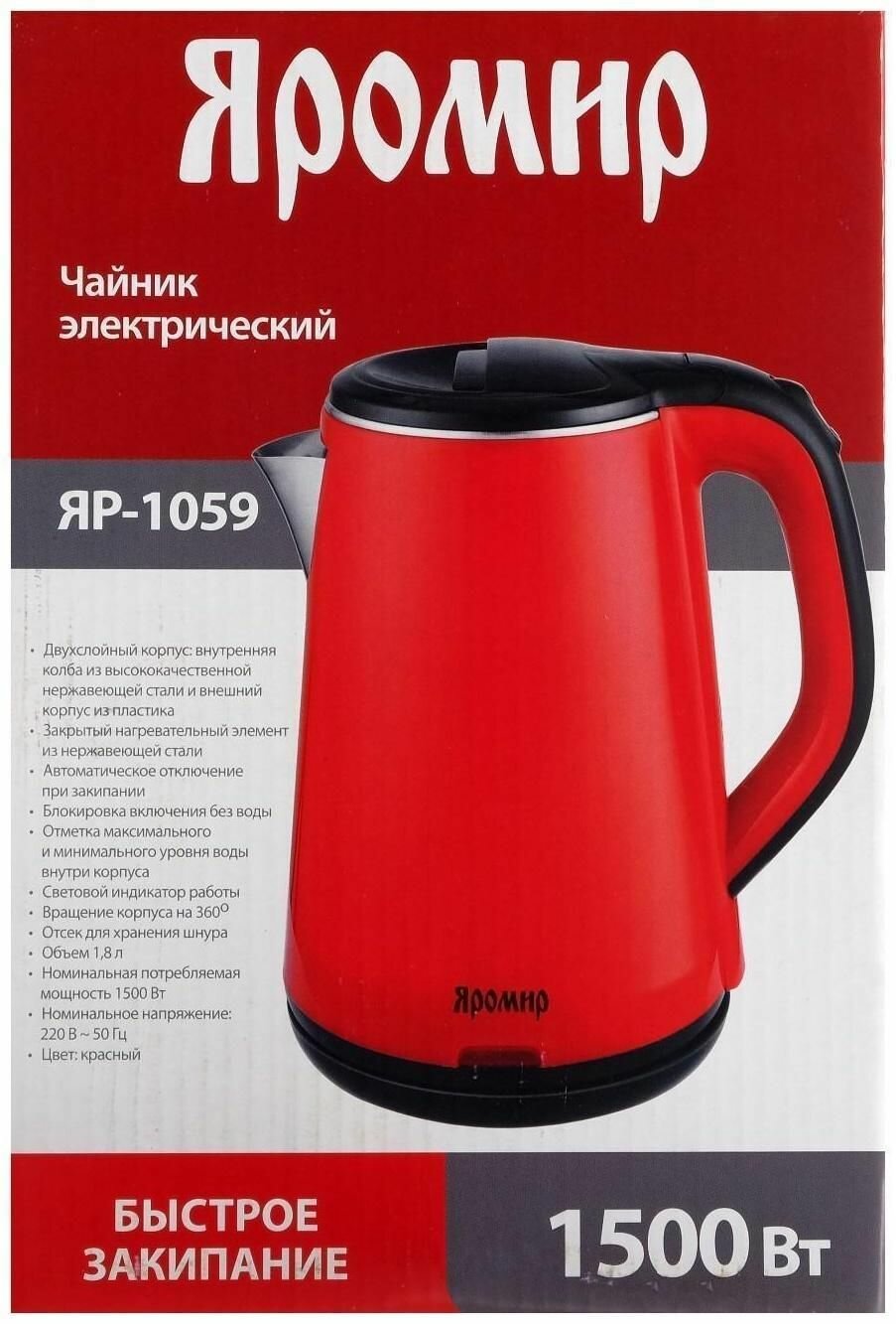 Чайник электрический яромир ЯР-1059 1,8 л, 1500 Вт, красный