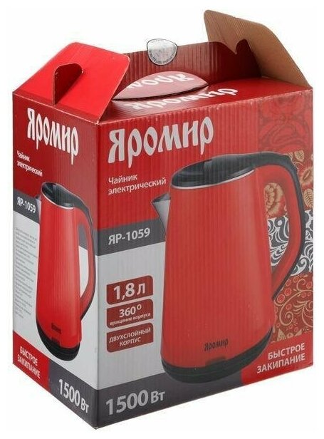 Чайник электрический яромир ЯР-1059 1,8 л, 1500 Вт, красный