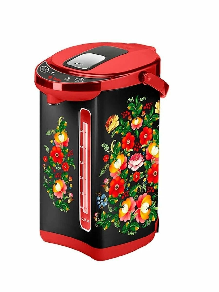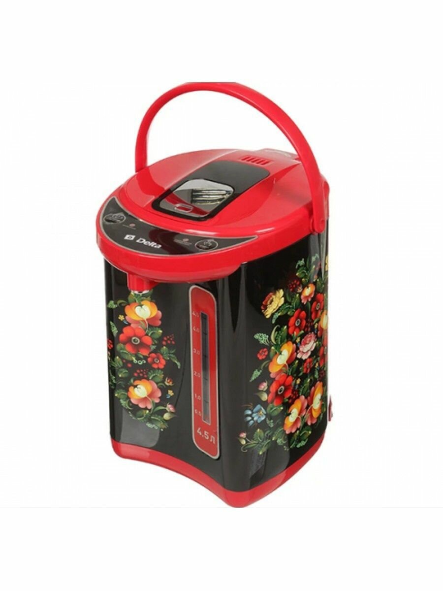 Термопот DЕLTA DL-3034, 4.5 л, 750 Вт, чёрно-красный с рисунком "Хохлома"