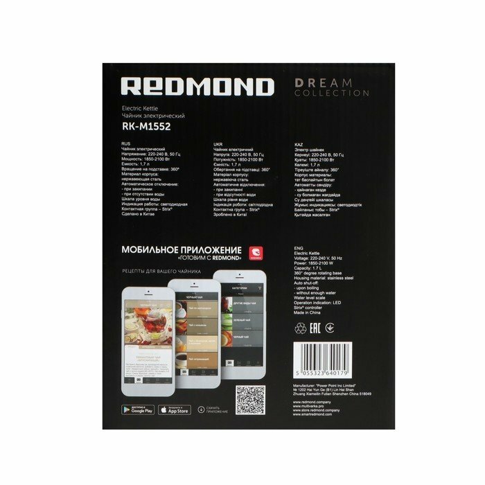 Электрический чайник REDMOND RK-M1552, 1,7 л, нержавеющая сталь, вращение на 360°
