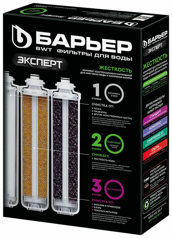 Картриджи сменные БАРЬЕР «Эксперт Жесткость», для холодной воды, 3 ступени, ресурс 10000 л, комплект 3 шт.