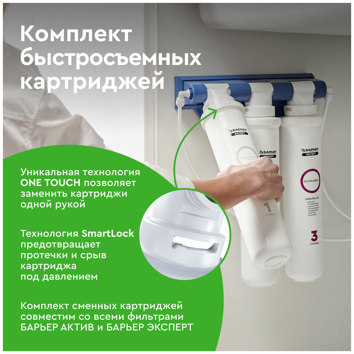 БАРЬЕР эксперт Жесткость, комплект картриджей для фильтра под мойку, защищает от накипи, быстросъемные
