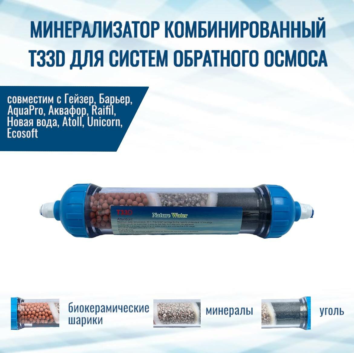 Минерализатор комбинированный Т33D для систем обратного осмоса NatureWater интересное: