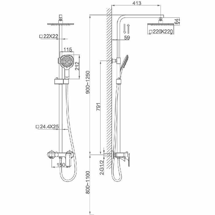 | Дополнительная информация | цвет белый; высота стойки для душа: 1250 мм; диаметр душевой лейки: 115 мм; диаметр верхнего душа: 220 мм |