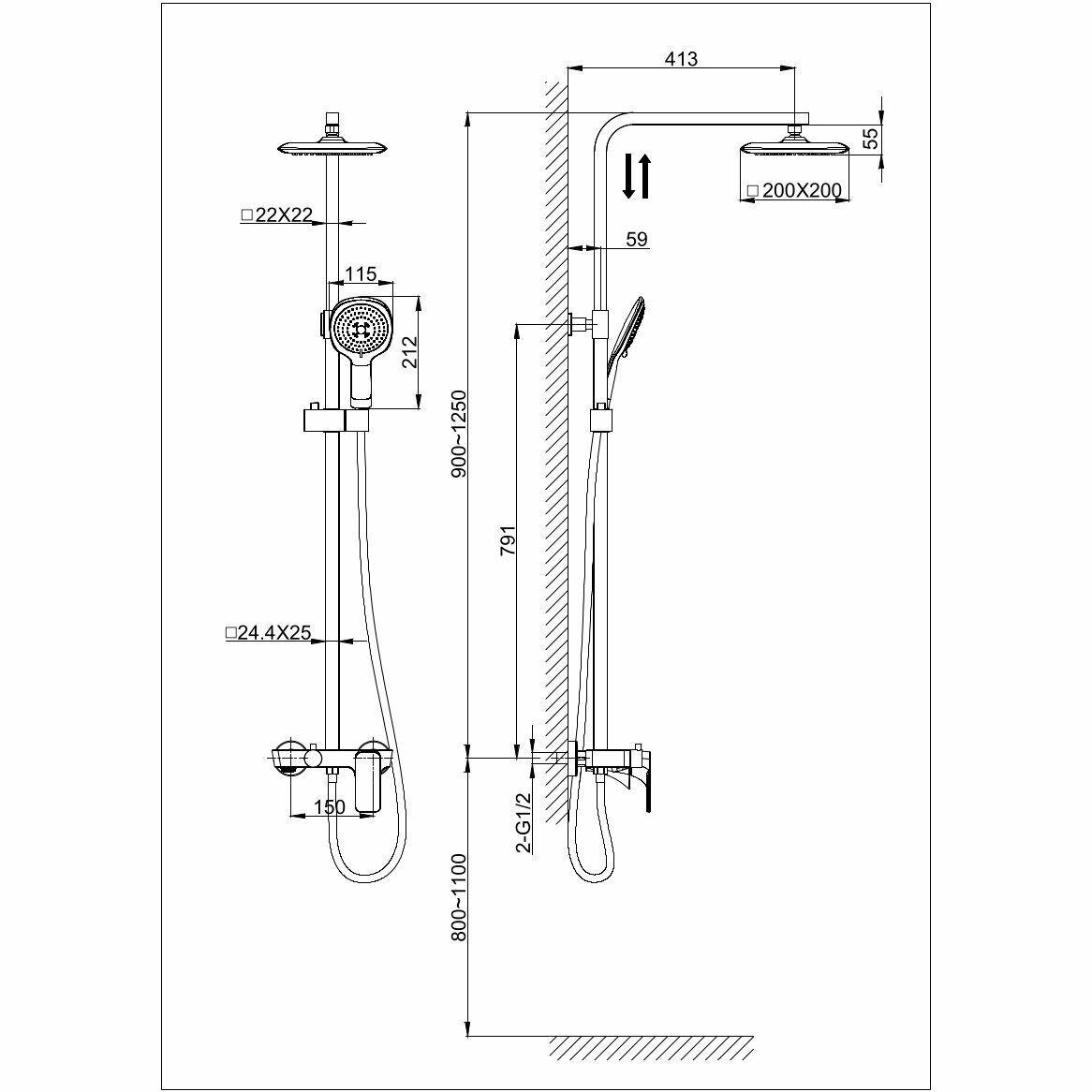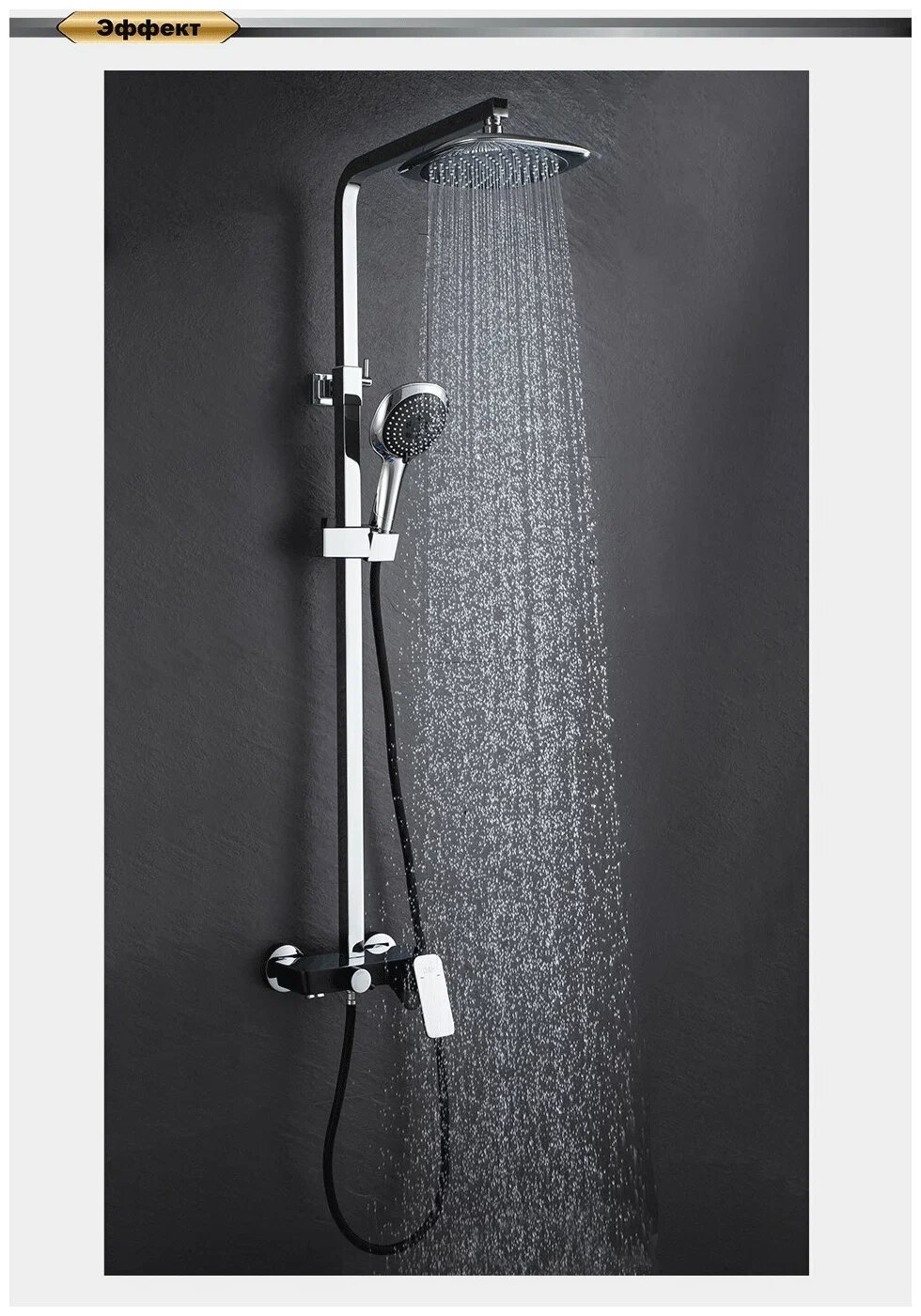 | Дополнительная информация | цвет черный; высота стойки для душа: 1250 мм; диаметр душевой лейки: 115 мм; диаметр верхнего душа: 220 мм |