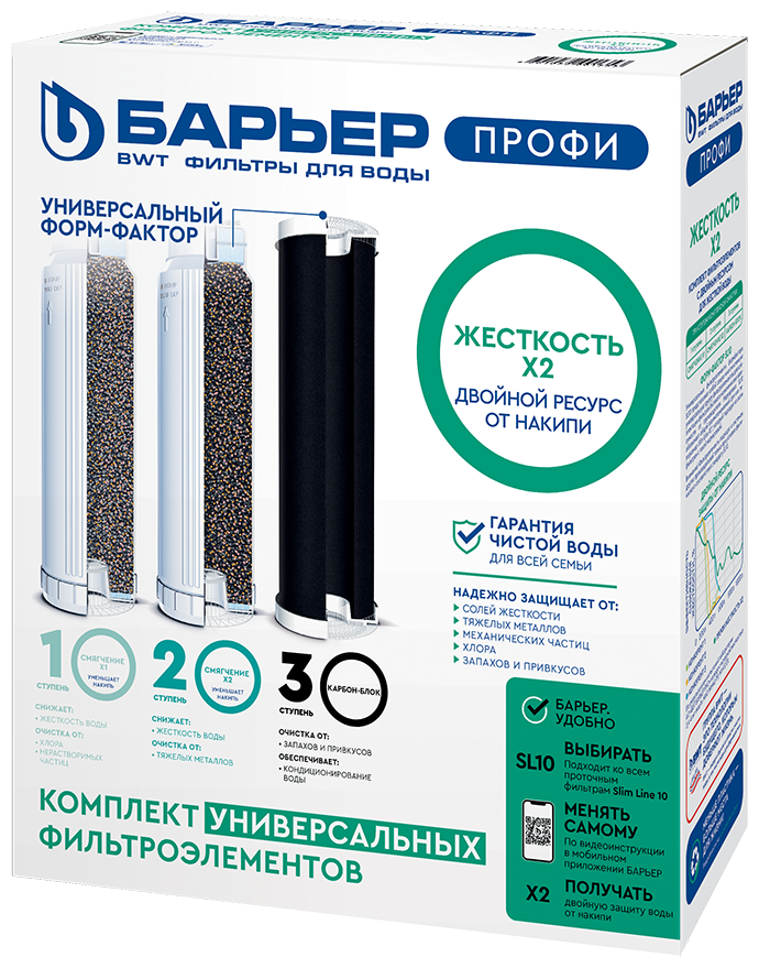 БАРЬЕР профи Жесткость х2, комплект картриджей для фильтра под мойку, двойная защита от накипи, SL10