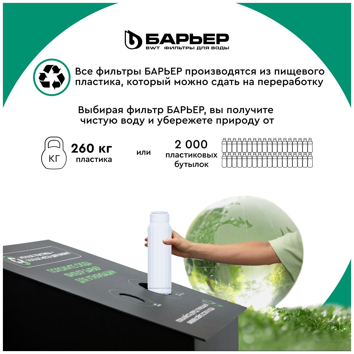 | Плюсы: | Лёгкая установка на фильтр Барьер Профи. Вода чистая. |