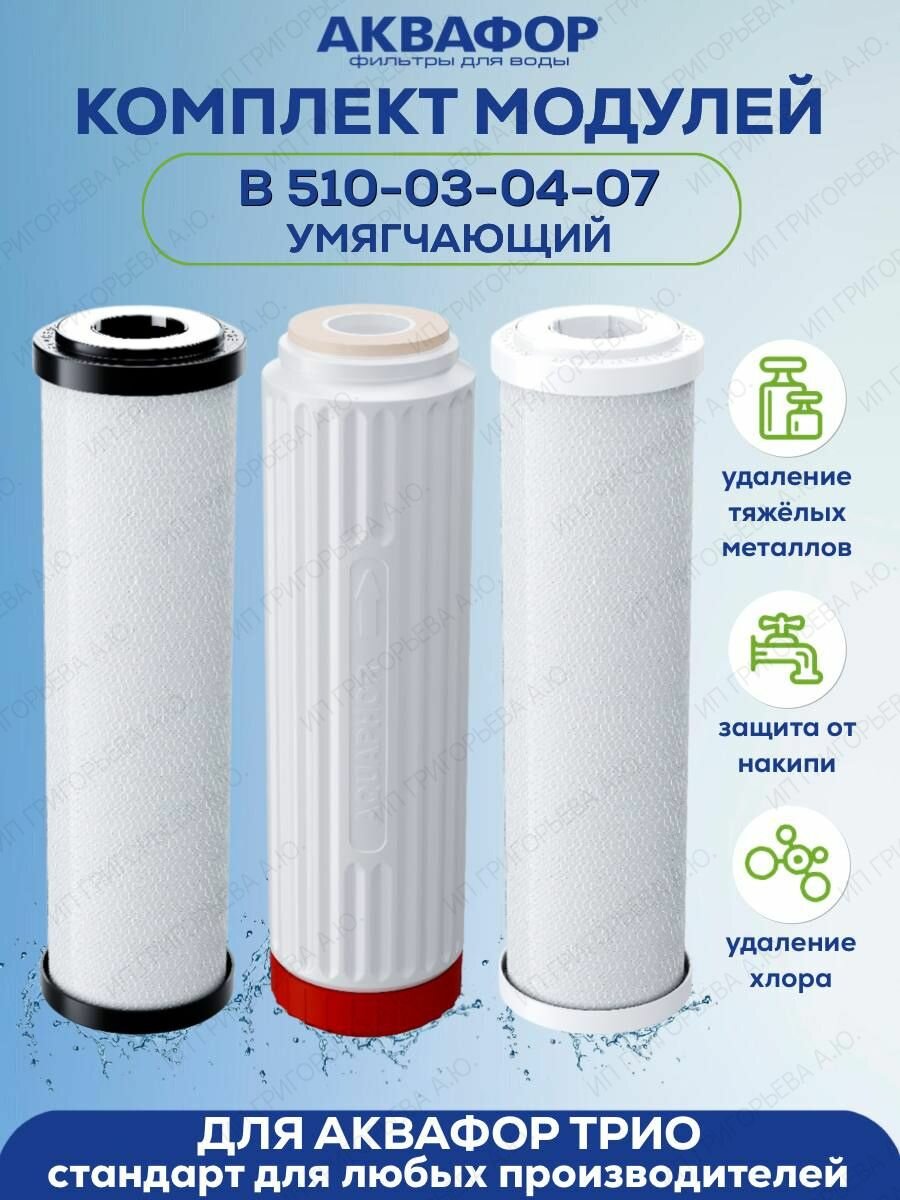 Комплект картриджей Аквафор В510-03-04-07 для Аквафор Трио Умягчающий
