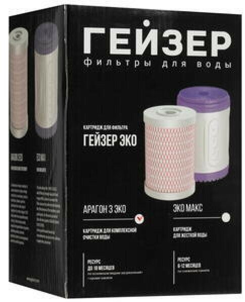 Картридж Гейзер Арагон 3 ЭКО, для мягкой воды, обеспечивает уникальную очистку по широкому спектру загрязнителей, включая бактерии, 30060