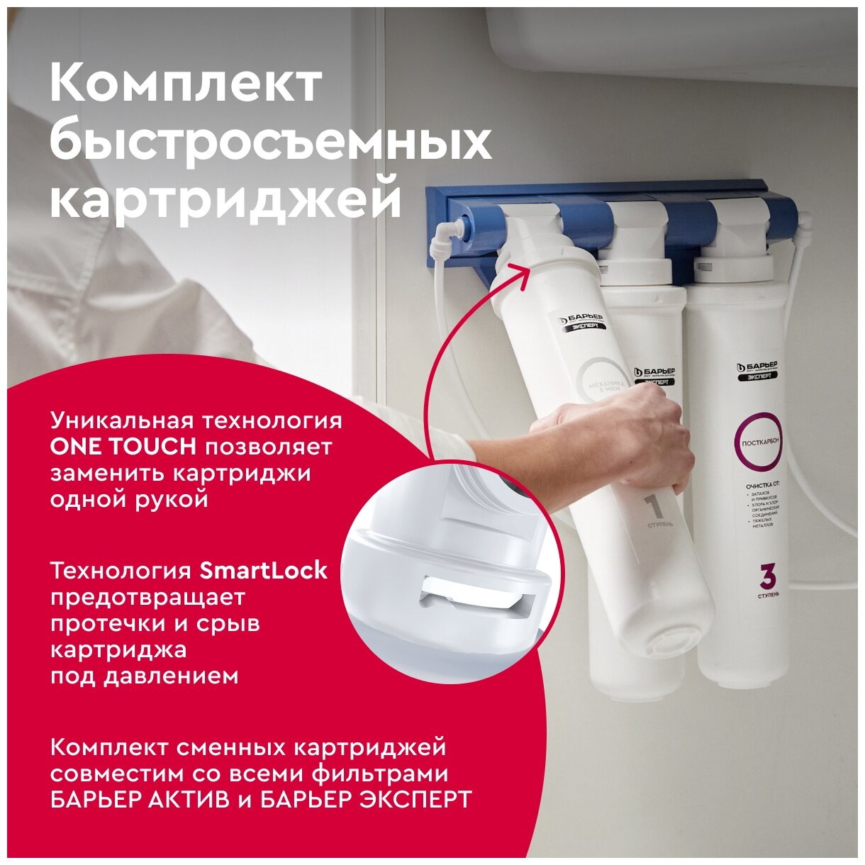 Комплект картриджей для фильтра под мойку БАРЬЕР эксперт Ультра, защищает от бактерий