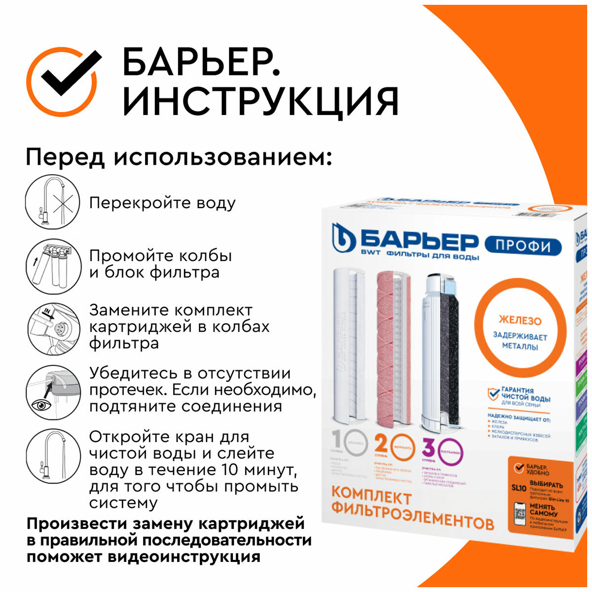 Комплект картриджей Профи Железо для фильтра Барьер Профи набор из 3-х модулей арт. Р133Р00
