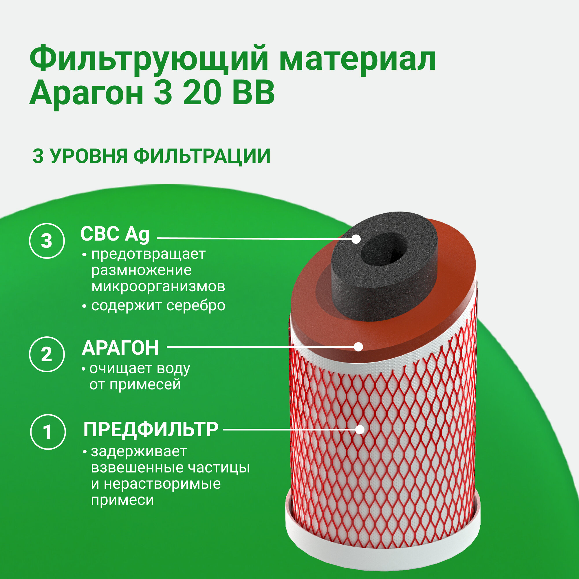 Картридж Арагон-3, для магистральных фильтров, для холодной и горячей воды. Размер 20ВВ